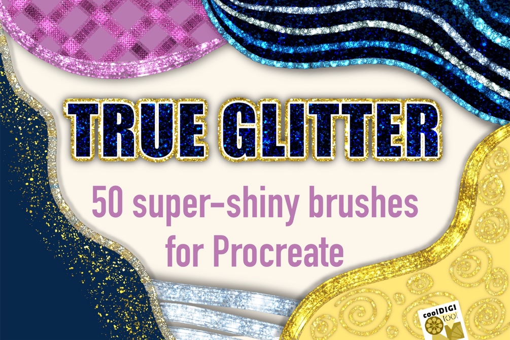 You get 50 super-shiny glitter brushes for Procreate.