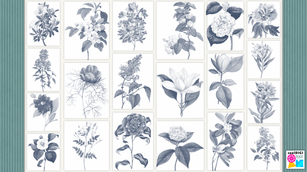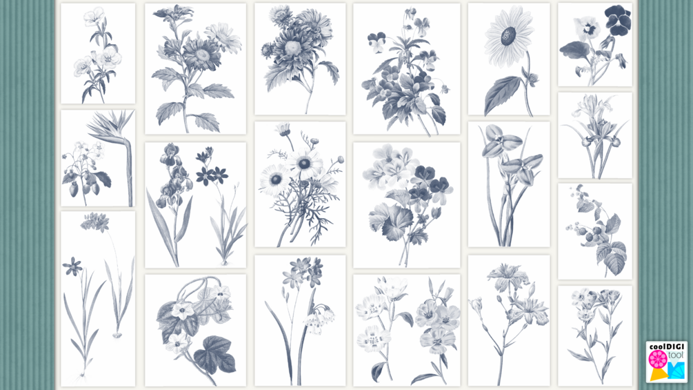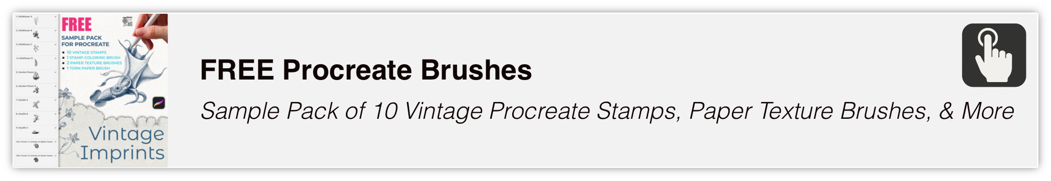 The floral motifs have been carefully isolated from high-quality public domain illustrations, digitally enhanced, and transformed into Procreate stamp brushes.